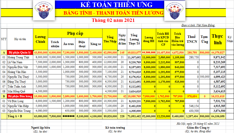 Cach Lam Bảng Tinh Lương Tren Excel Mới Nhất Va Chi Tiết Nhất