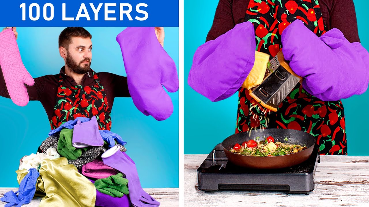 Thử Thach 100 Lớp Nấu Nướng Với 100 Lớp Quần Ao Youtube