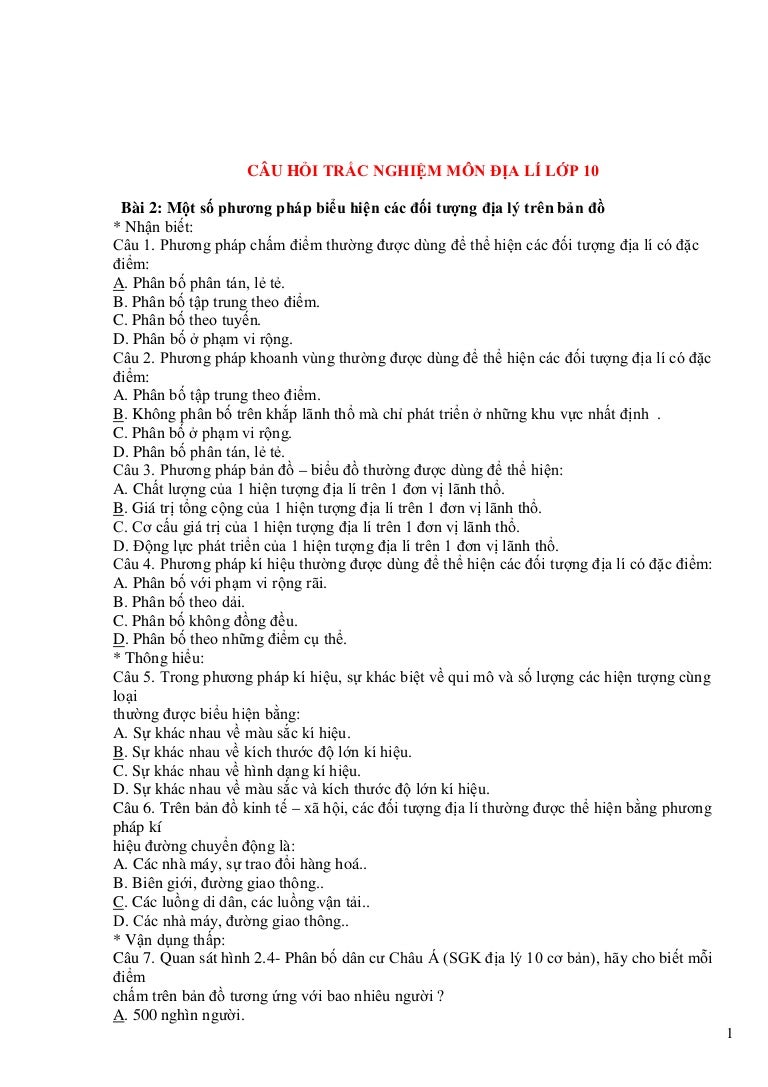 Cau Hỏi Trắc Nghiệm Mon địa Li Lớp 10 10200512052019